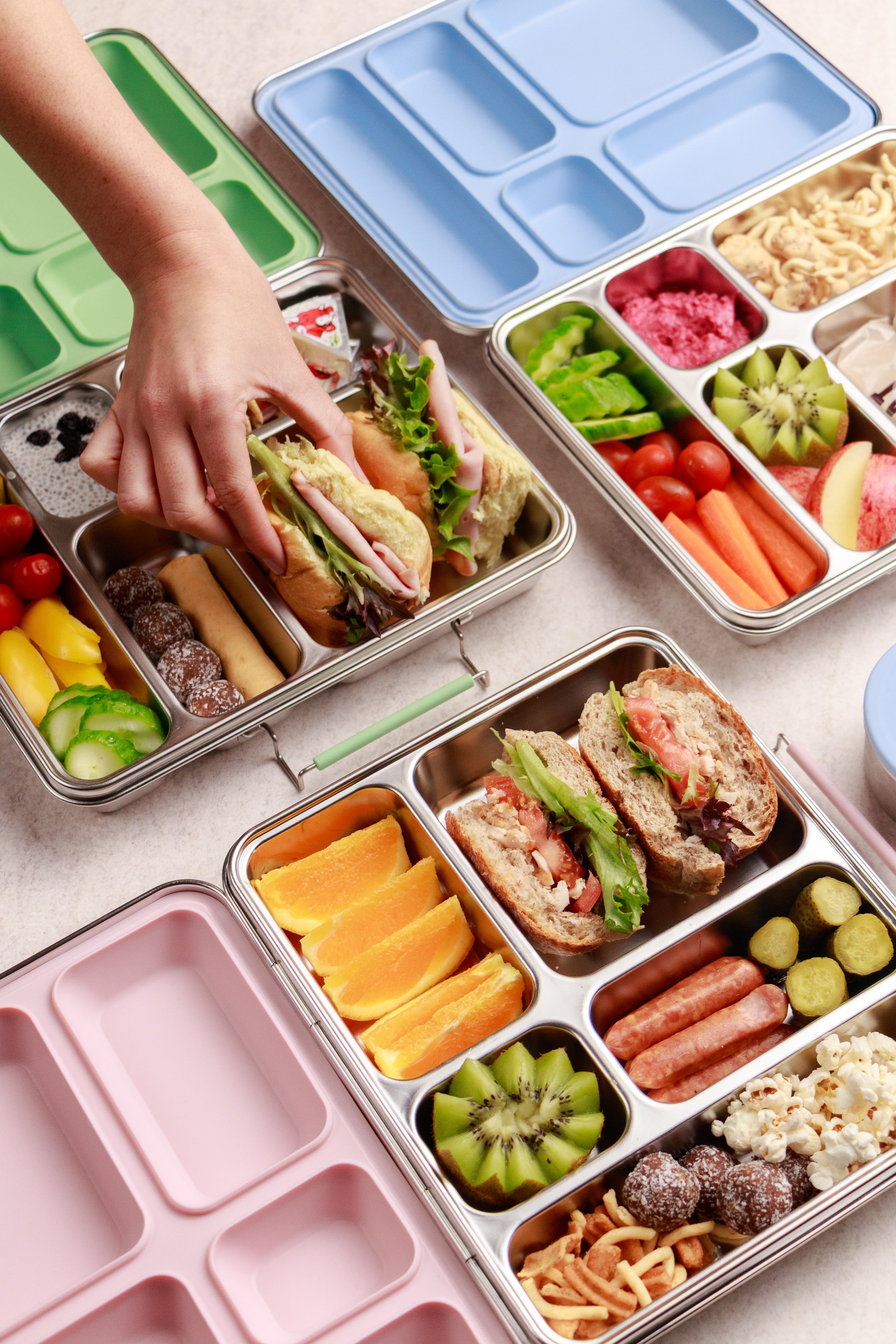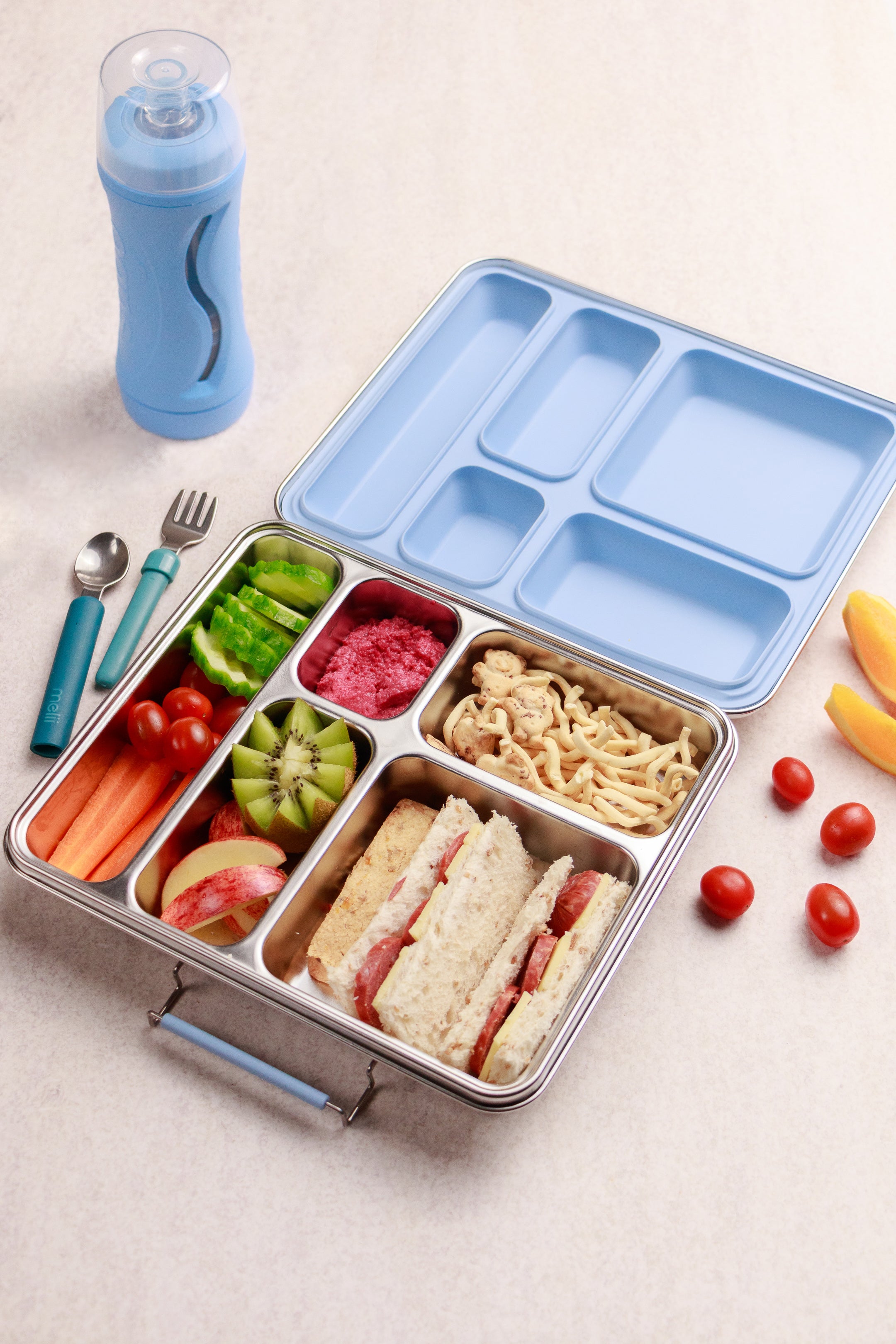 The Nestling Stainless Steel Jumbo Bento Box is built to survive the playground and fill bellies with five generously sized compartments. With five different-sized compartments, the Jumbo Bento helps you provide variety for every lunch, helping it get eaten! Use the biggest compartment for whole-filled sandwiches, bagels or wraps and the smaller compartments for small whole fruits like apples, apricots or tomatoes. Each compartment has a unique shape, making this a versatile lunch box for older children and adults. You can even use it to pack snacks for the entire family! The five compartments make packing lunches daily a breeze.
