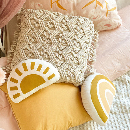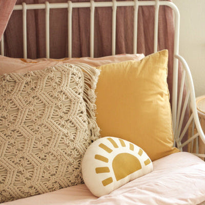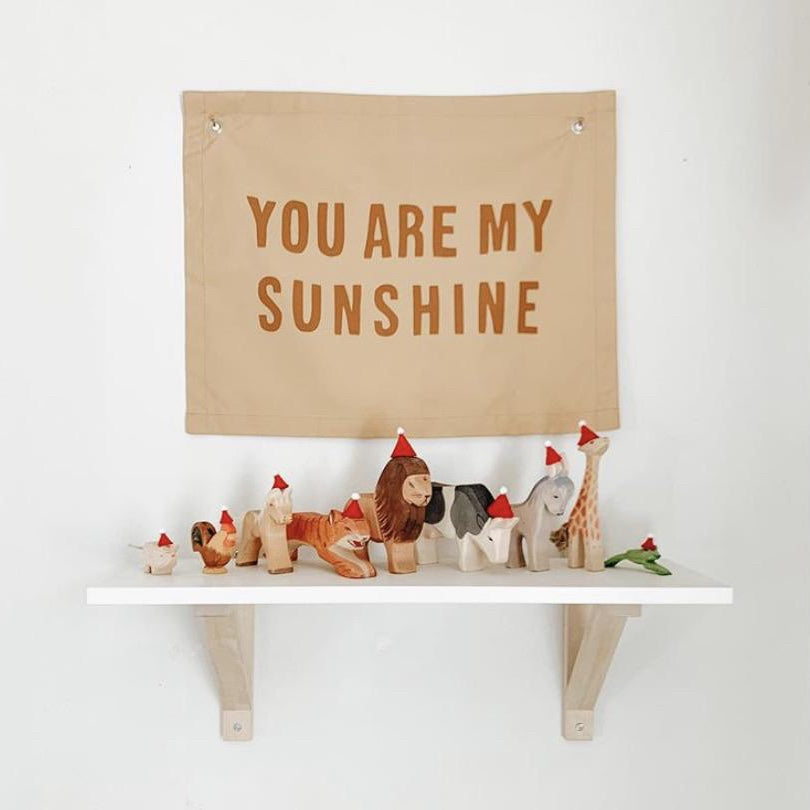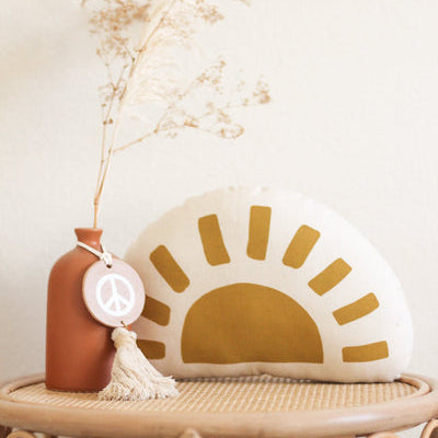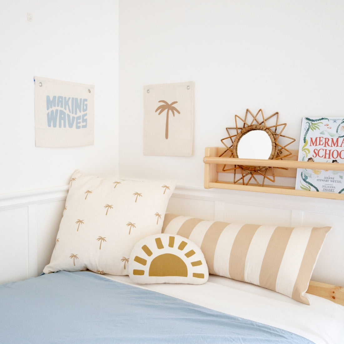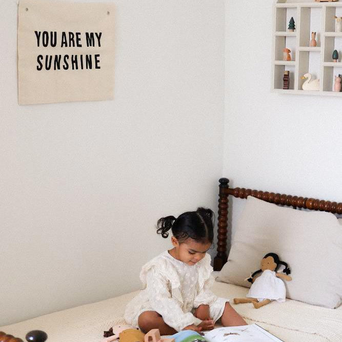 Sewn and screen printed by hand on natural canvas by local artisans.