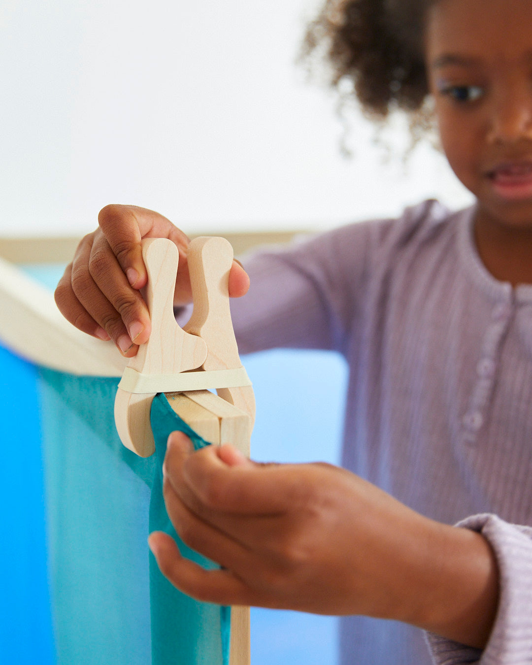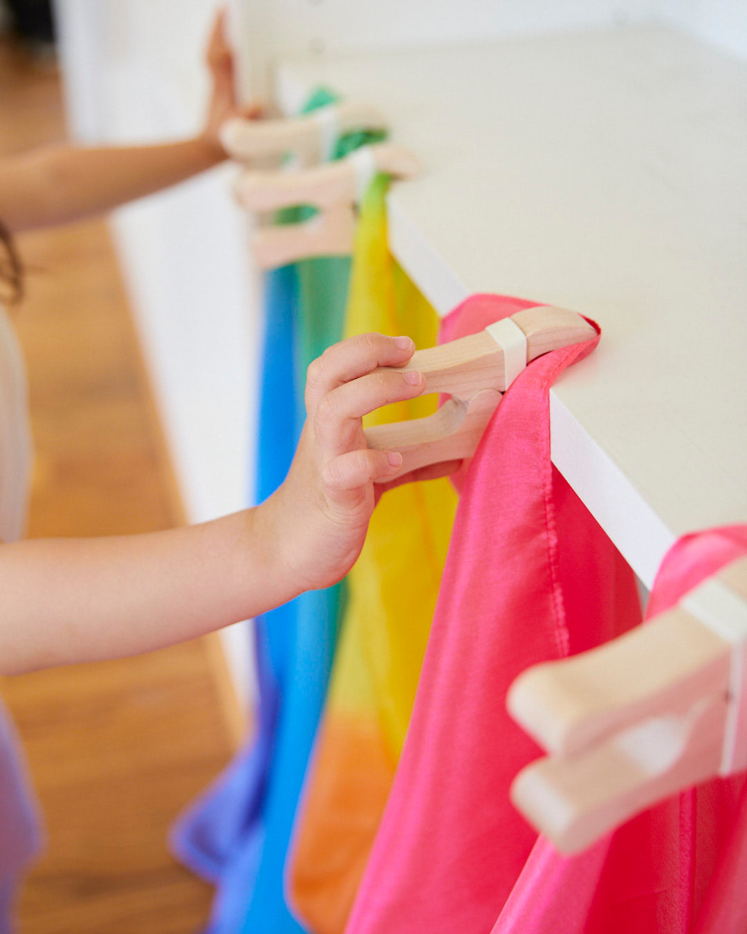 Children will use Playclips to clip Playsilks, Playcottons, and sheets, firmly together and onto imaginative play scenes.