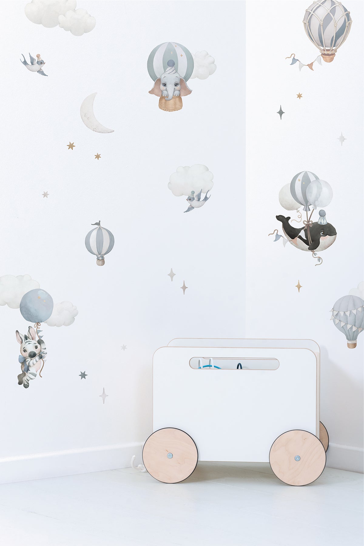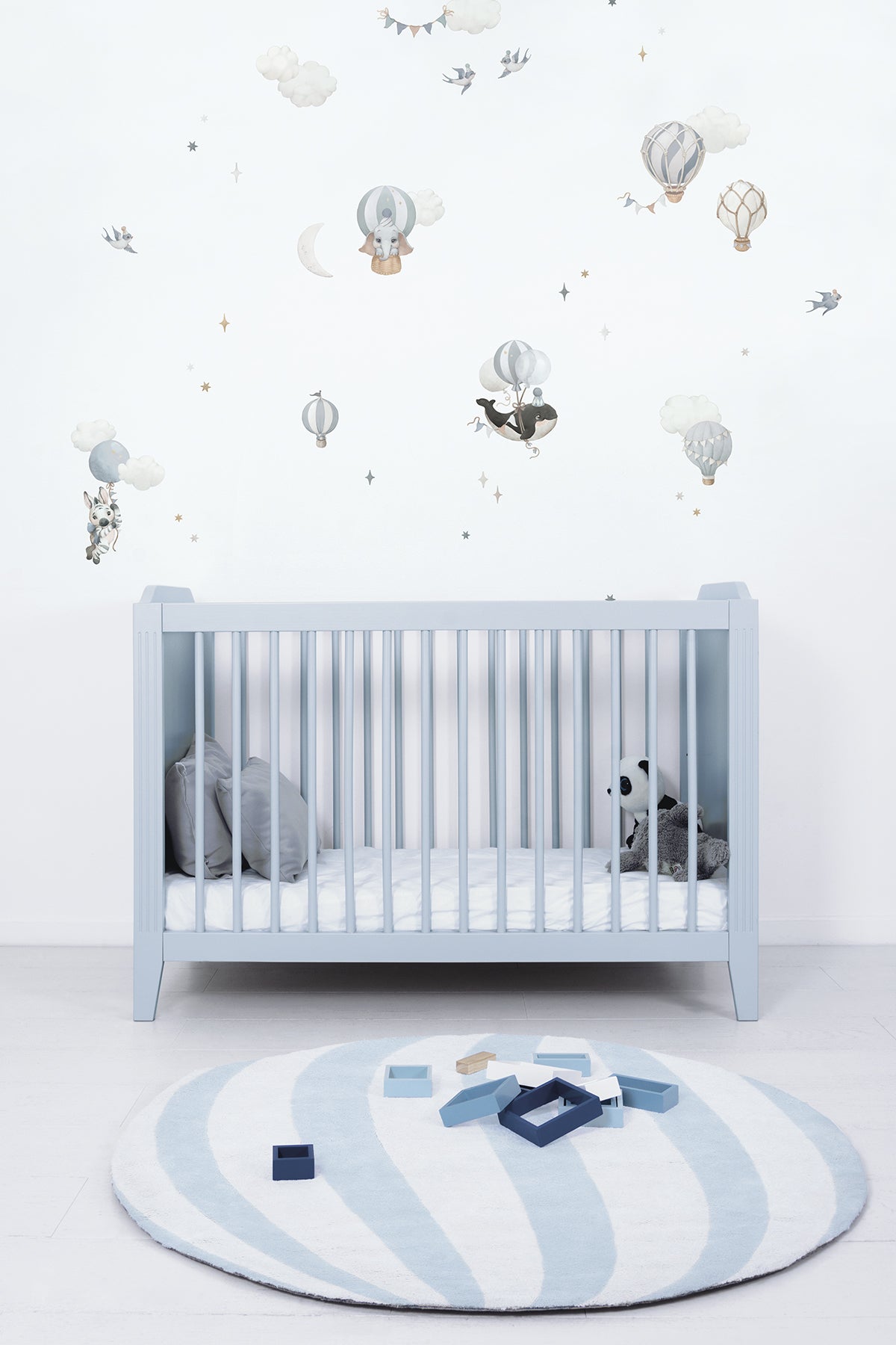 Watercolours with a nostalgic charm enhanced by a harmonious and elegant colour schemes. A gentle and cheerful world for baby's room.