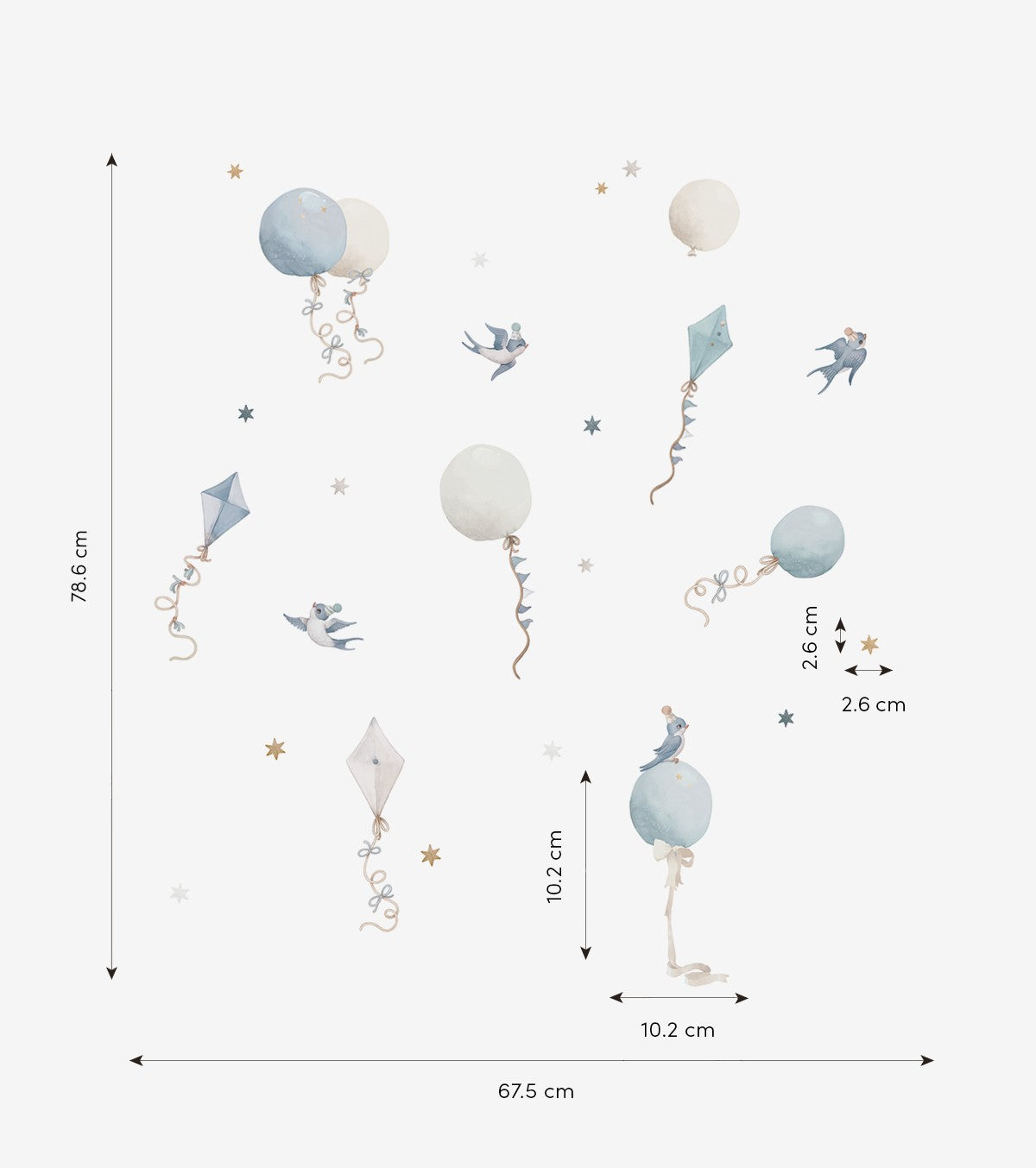 Watercolours with a nostalgic charm enhanced by a harmonious and elegant colour schemes. A gentle and cheerful world for baby's room.
