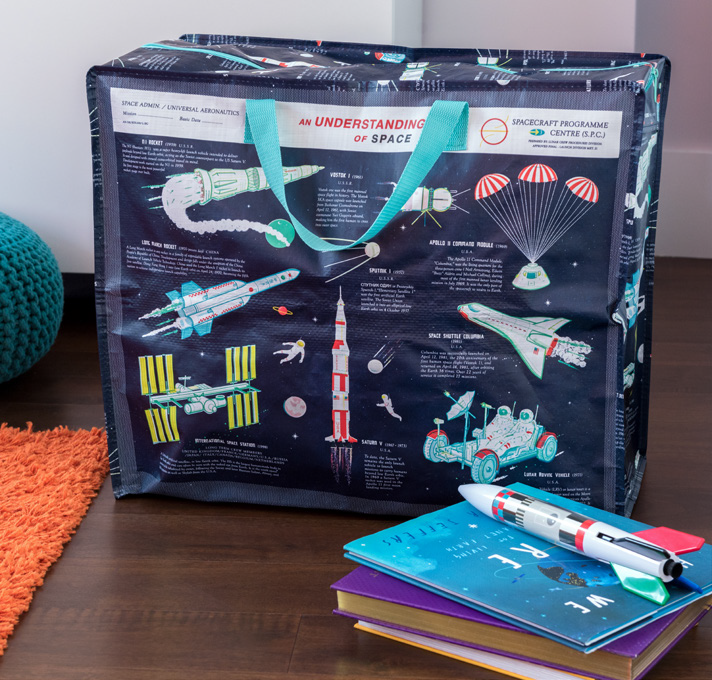Fly through the tidying up with this handy jumbo storage bag. Featuring the retro rockets from our Space Age design, this storage bag is the perfect solution for clearing away toys and clothes in the bedroom of any young space fan.