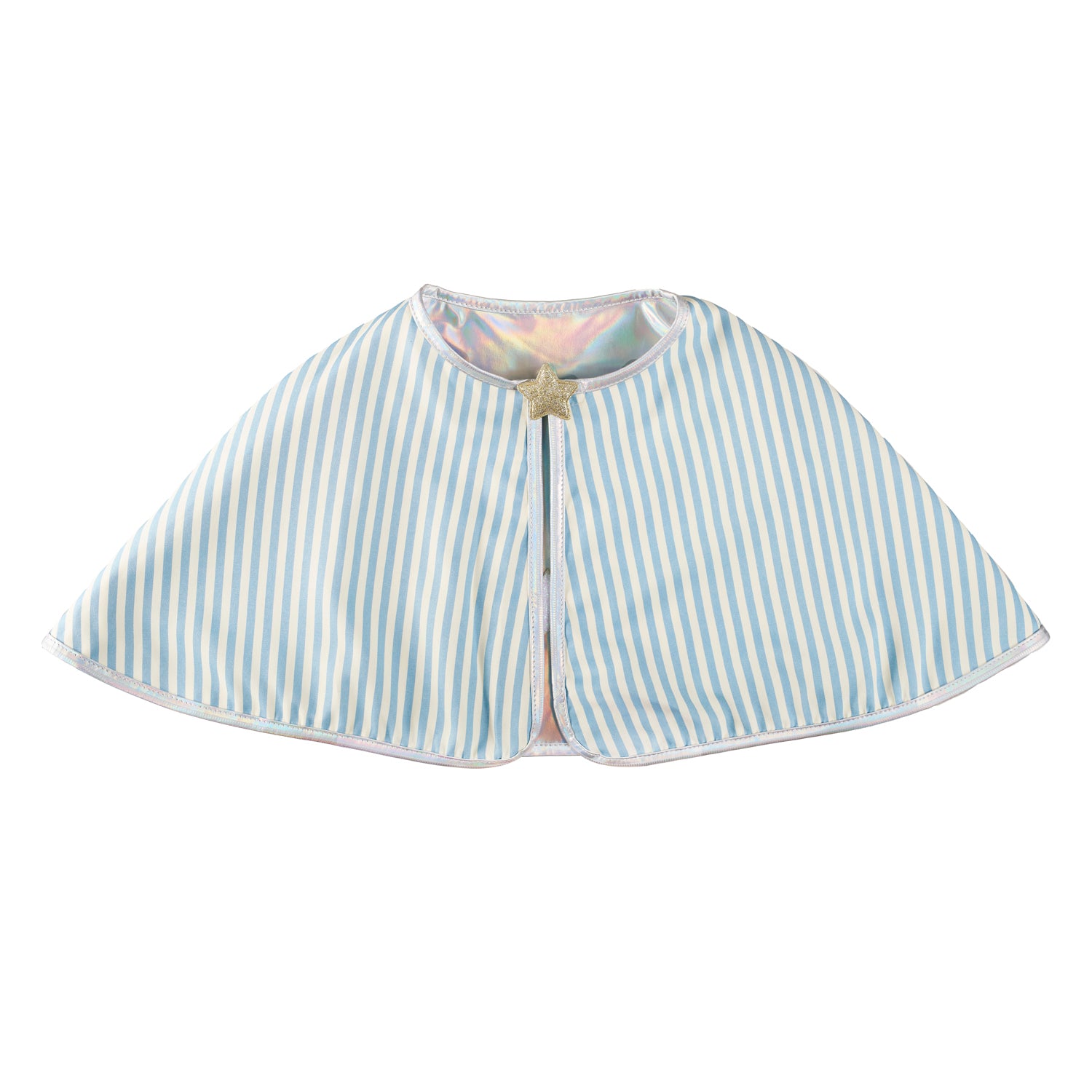 Our dazzling super hero cape is the perfect sidekick to any little heroes adventures! Made from shimmering iridescent fabric and sprinkled with bright stars and bold lightening bolts for extra super powers. With a glittery gold star velcro closure, and fully lined with a blue stripy lining. Made using recycled glitter.