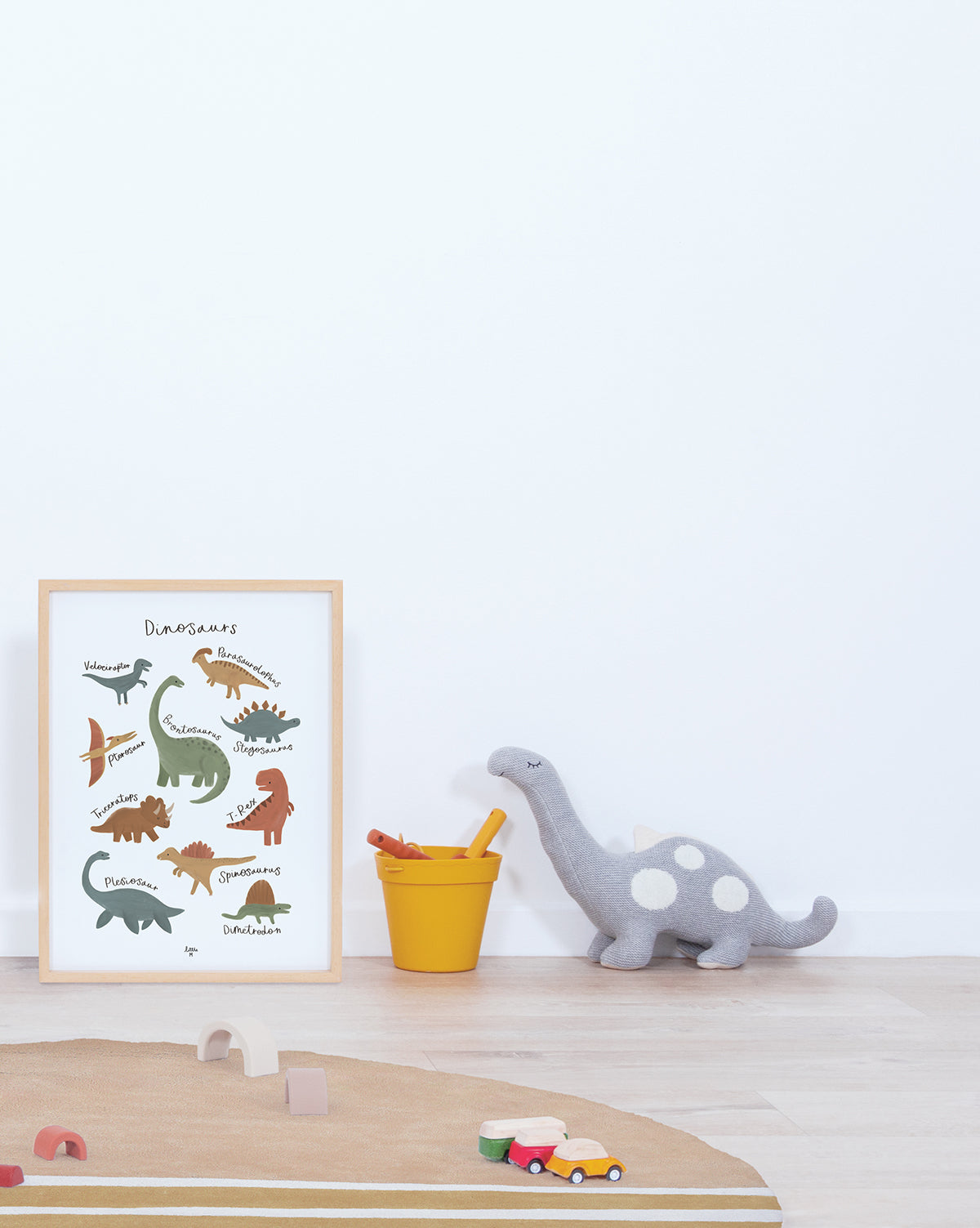 We wanted to make this collection a joyful and playful version of the dinosaur world with lovely, warm and comforting colours. Triceratops, Stegosaurus, Diplodocus look great