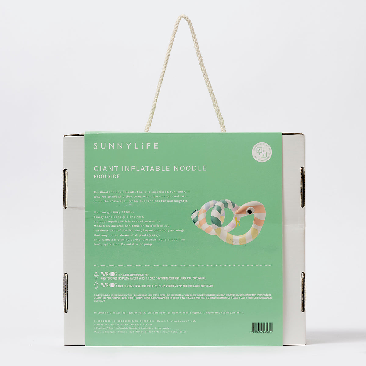 Sunnylife Giant Inflatable Noodle Snake Poolside Sorbet Stripe