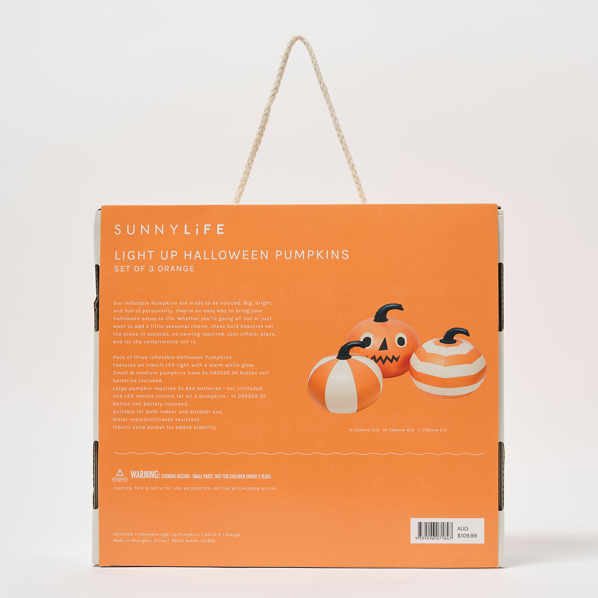 Sunnylife Inflatable Halloween Light Up Pumpkins Set of 3 | ORANGE