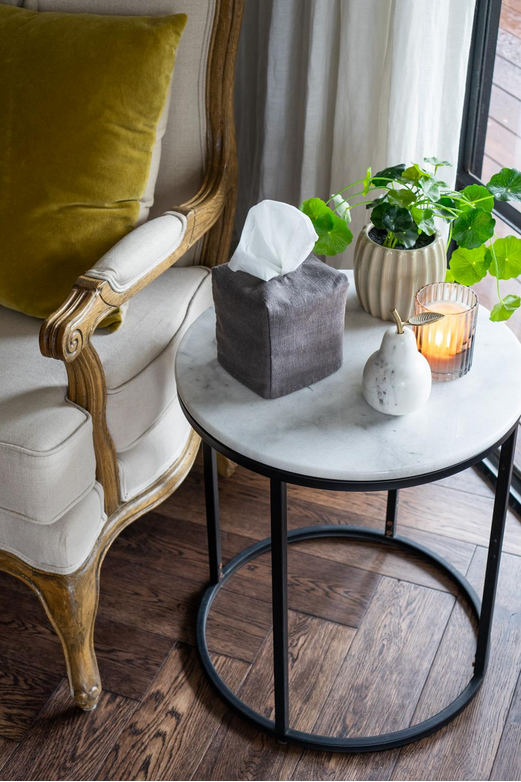 Hide unsightly tissue boxes with this simple French inspired 100% linen Tissue Box Cover.