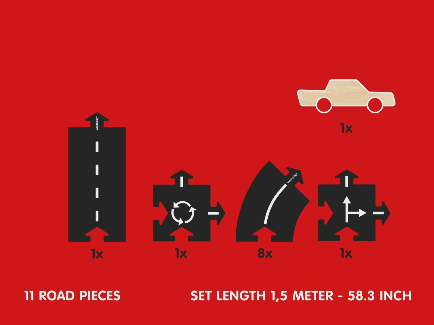 | content | 8 curves, 2 crossings and 1 straight plus 1 wooden car |