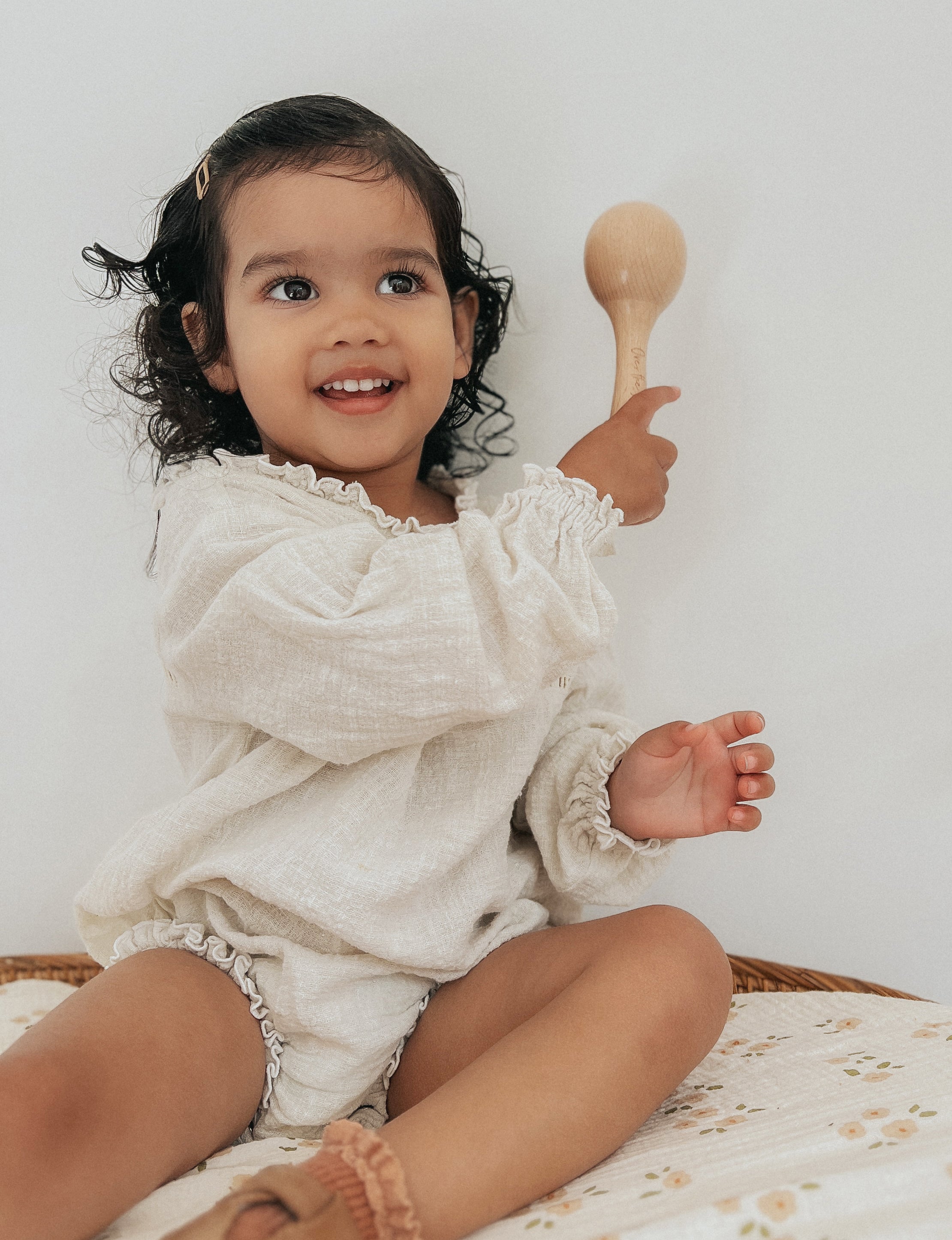 Make some noise! This fun wooden maraca is great for sensory and musical play.