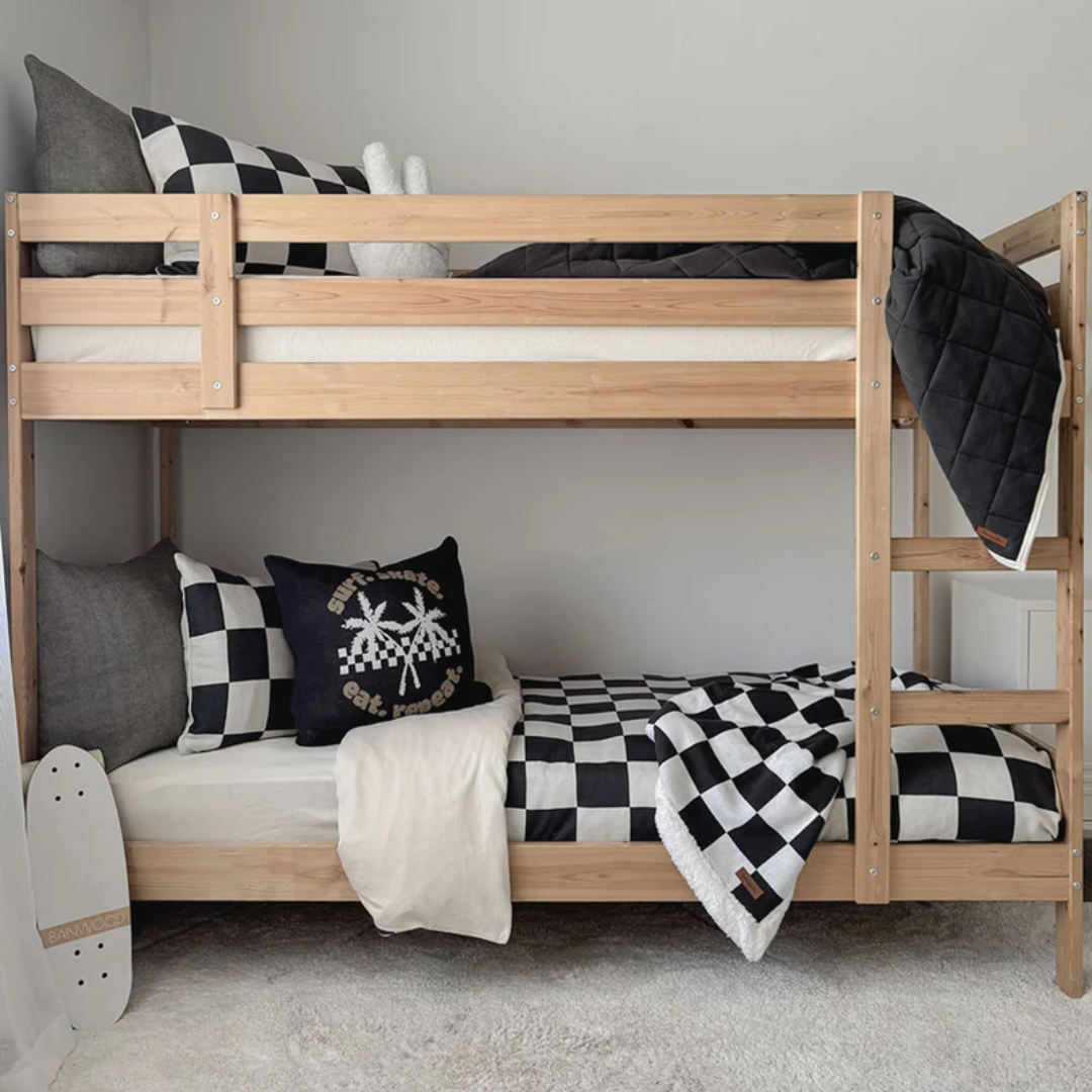 Chunky checks, big energy. Oversized charcoal and natural designs made for bigger kids, teens, and laid-back style. ✌🏼🖤