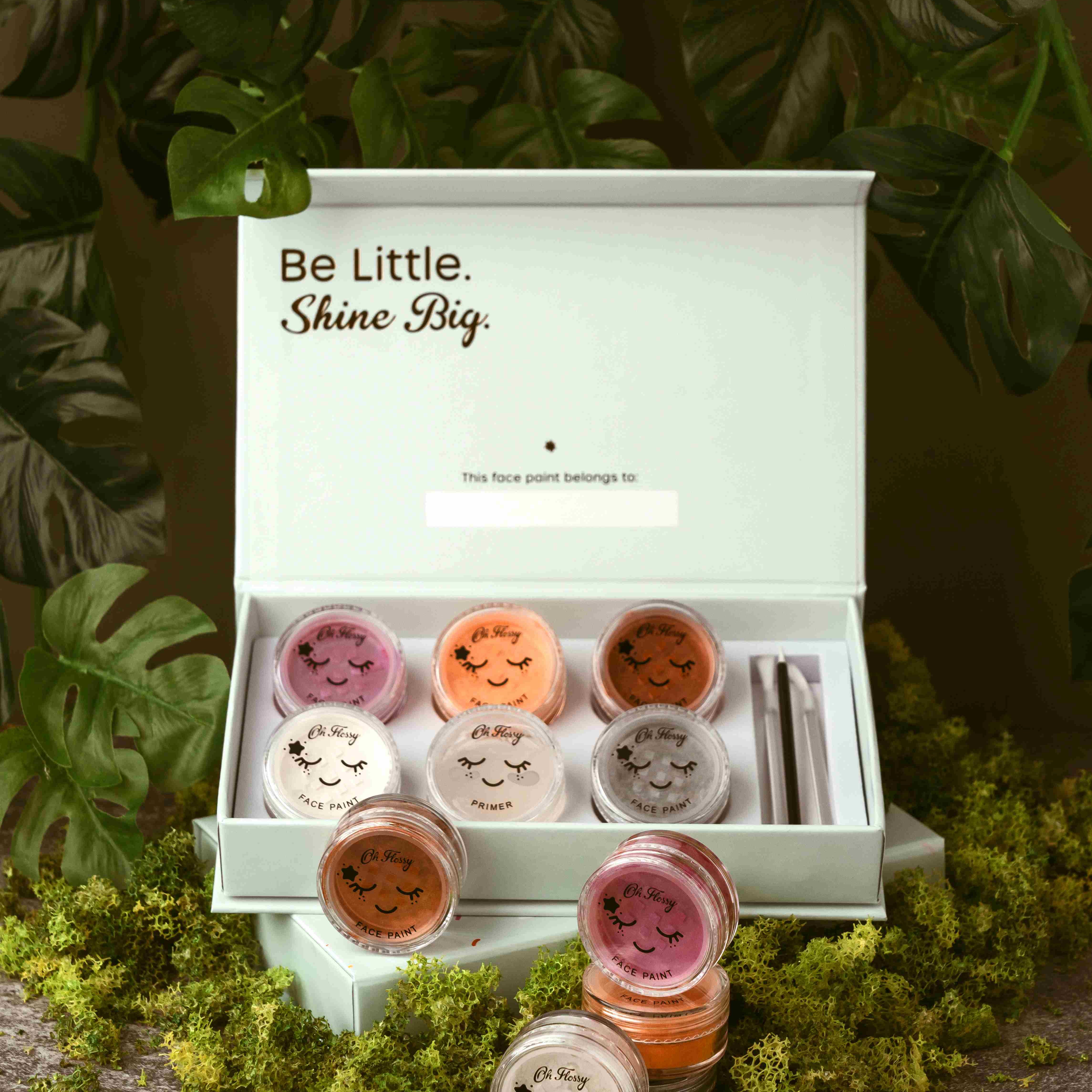Our makeup, face paint and glitter washes off with water alone, is not tested on animals, safe for sensitive skin and completely non-toxic.